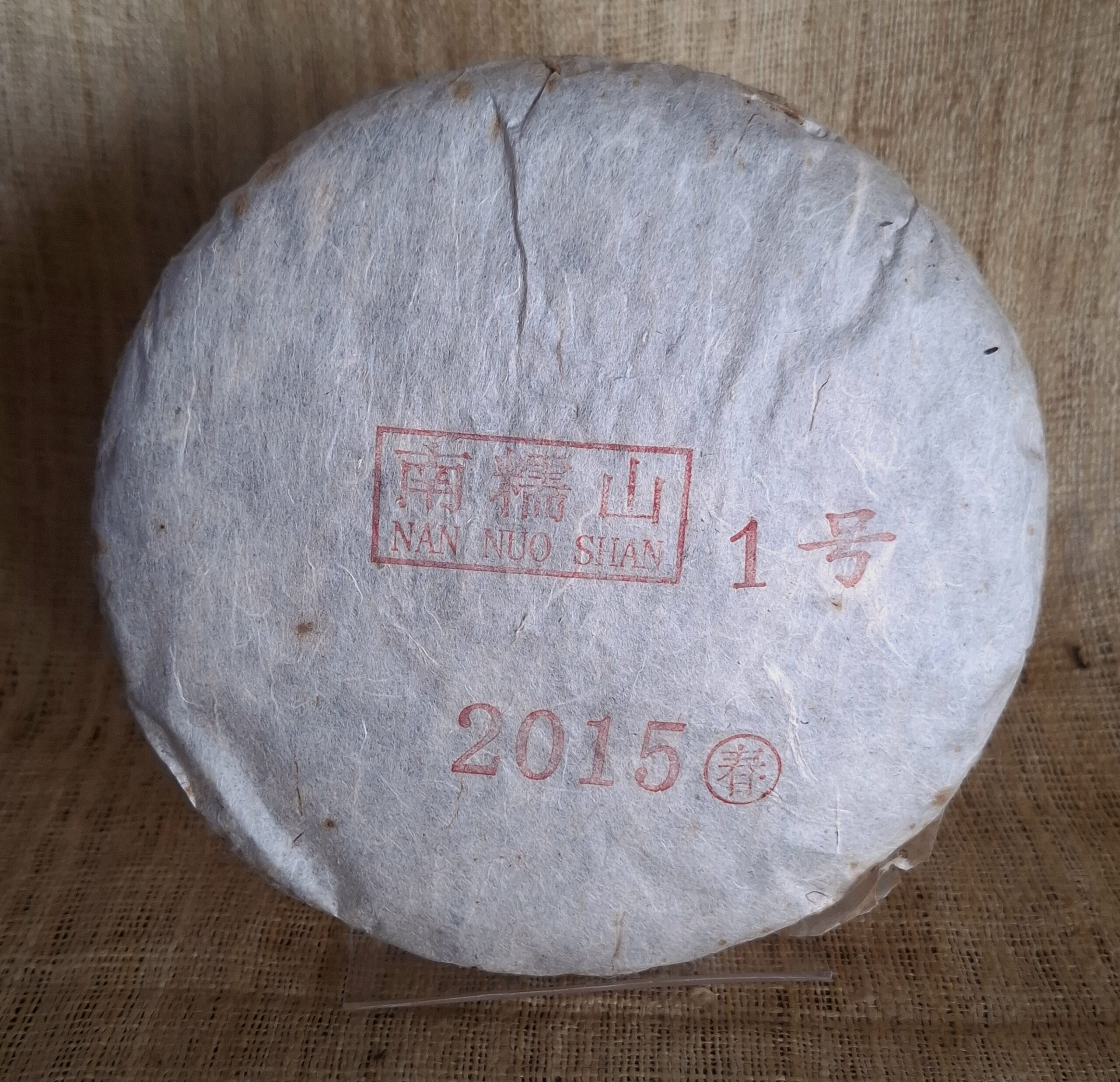 200g cake of Spring 2015 raw/sheng ancient tea tree puer tea from a tea garden above Ban Po Lao Zhai on Nan Nuo Shan.