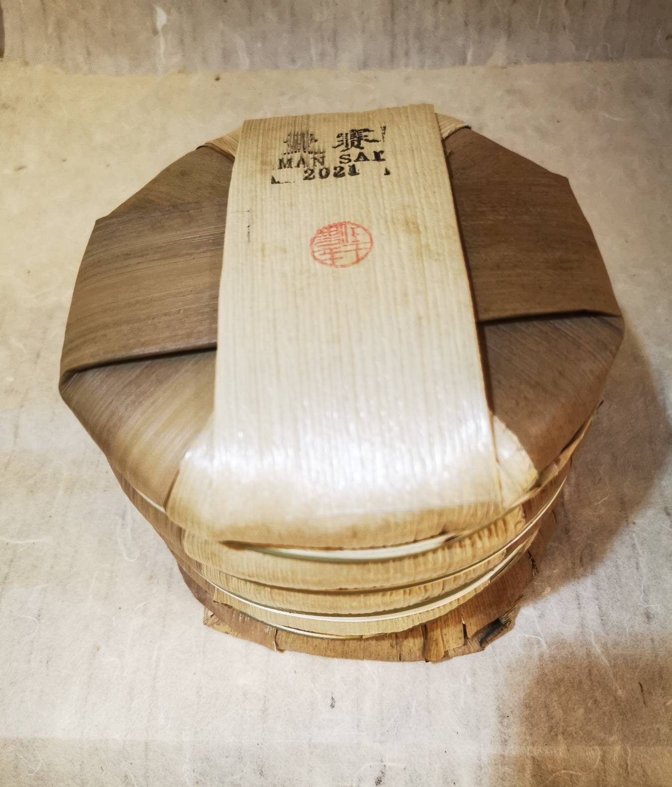 A raw Puer tea from ancient tea trees in Man Sai near Keng Tung in Myanmar, not far from the China-Myanmar border. The tea.was presses towards the end of 2021 and now, a year and a half later it's looking fairly promising.