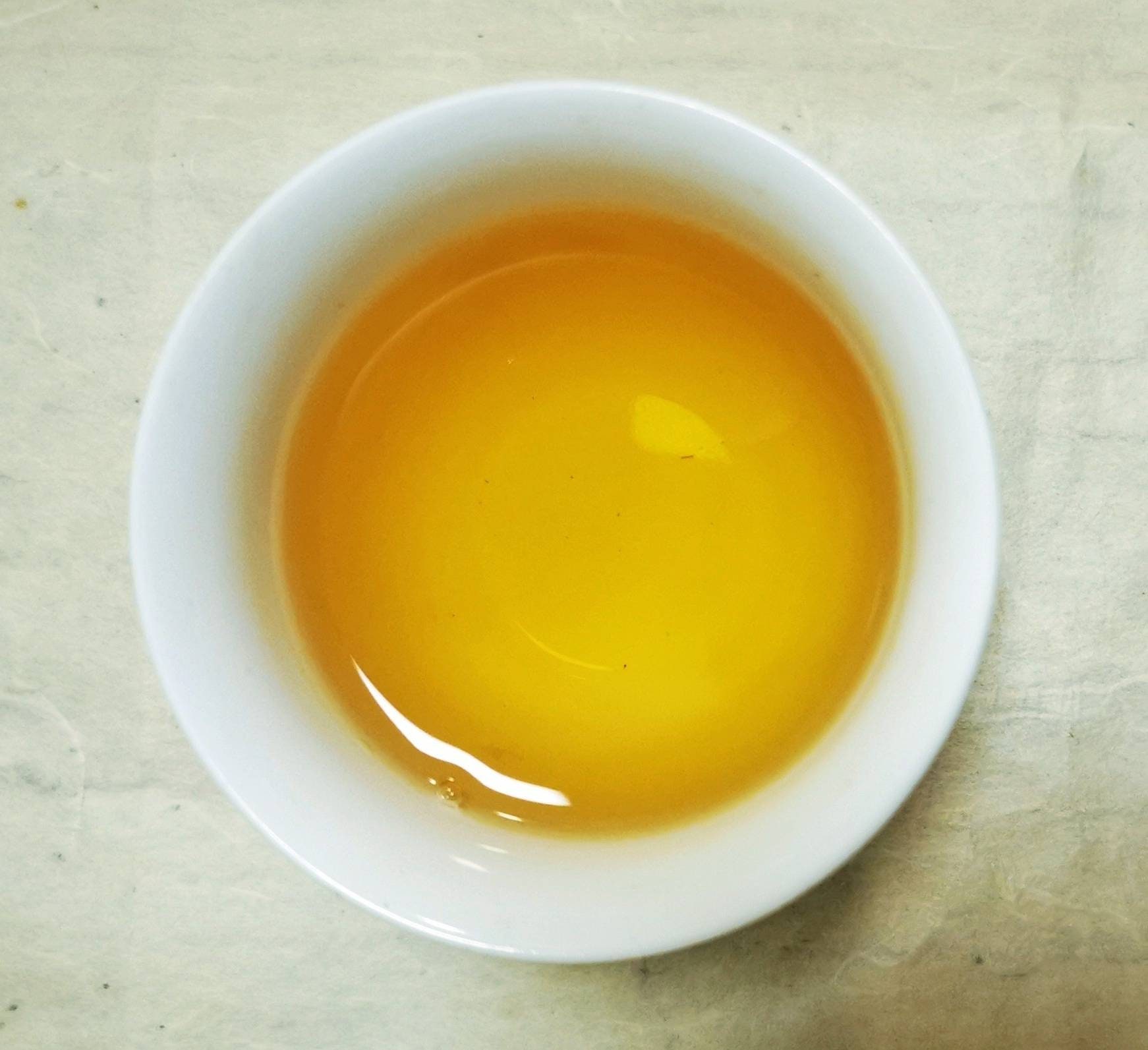 The 'bei xiang' has an initial petrichor note and then a heavy honey-like aroma. After cooling down more it becomes more heavy-floral. The gai wan lid continues to give off a faint floral-pine aroma.