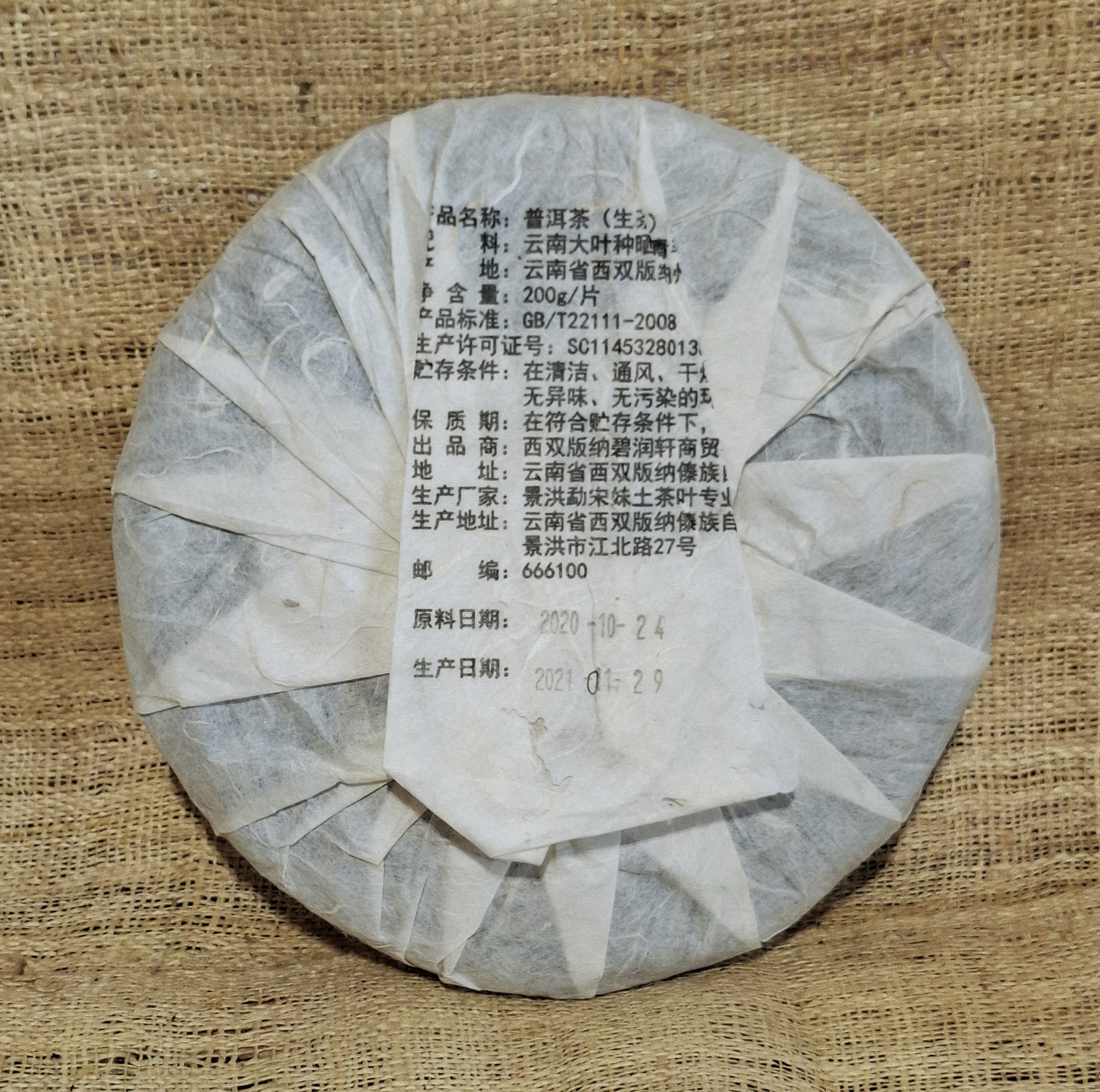 Ba Zong Zhai Autumn 2020, Old Tree Raw Puer, 200g cake