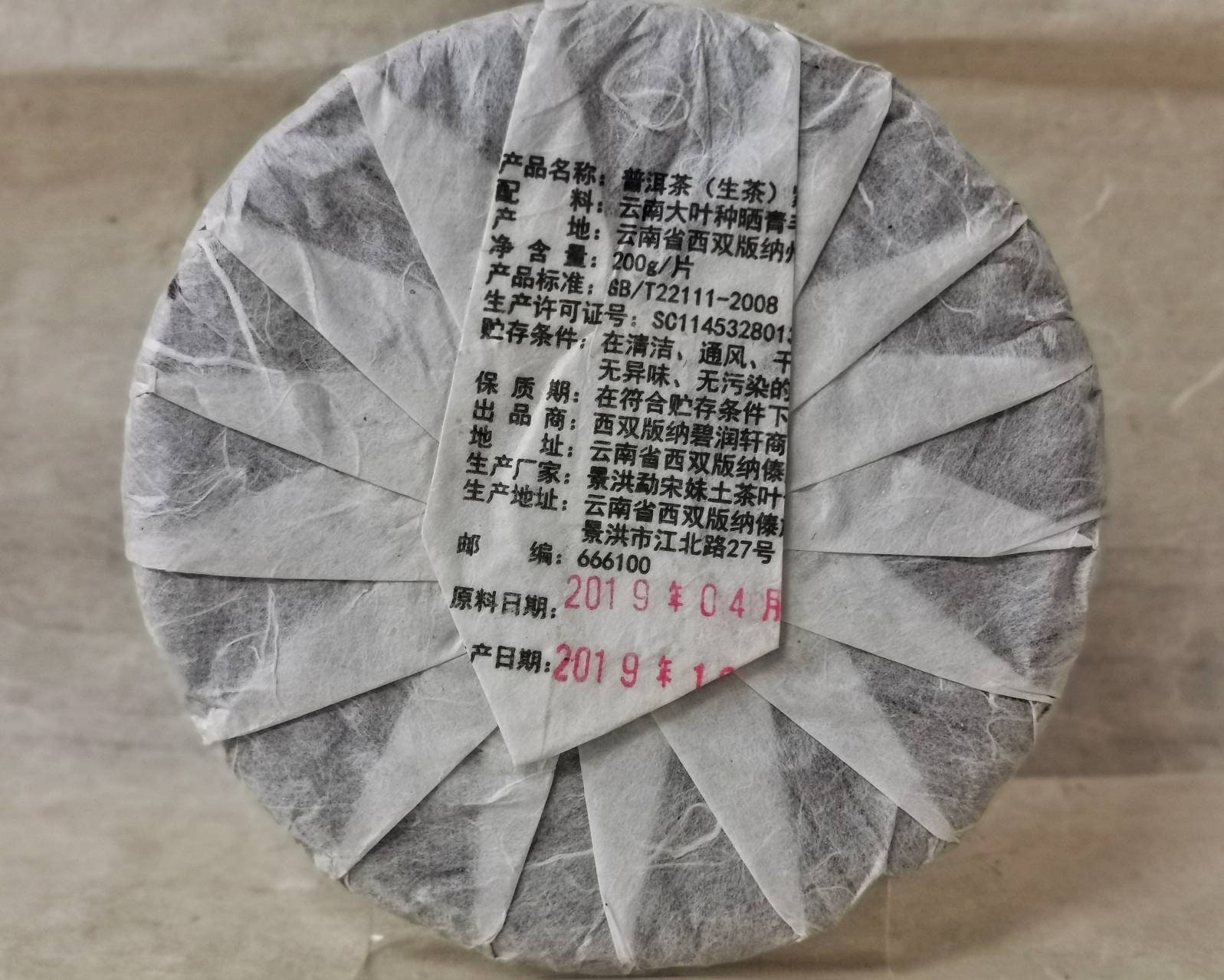 The tea was processed by the same tea farmer who has made the Ban Po ancient tree teas. Pressed in 200g cakes.