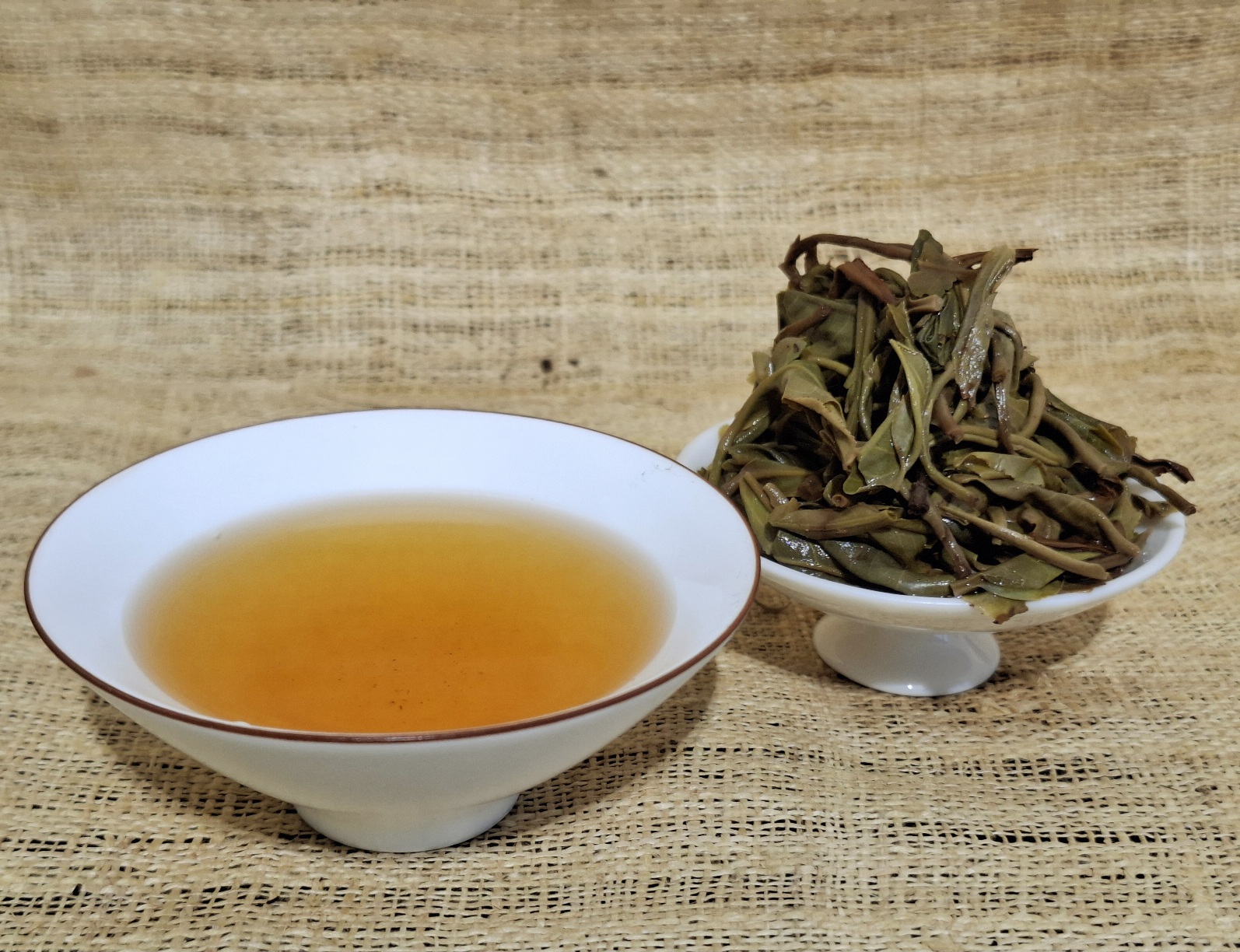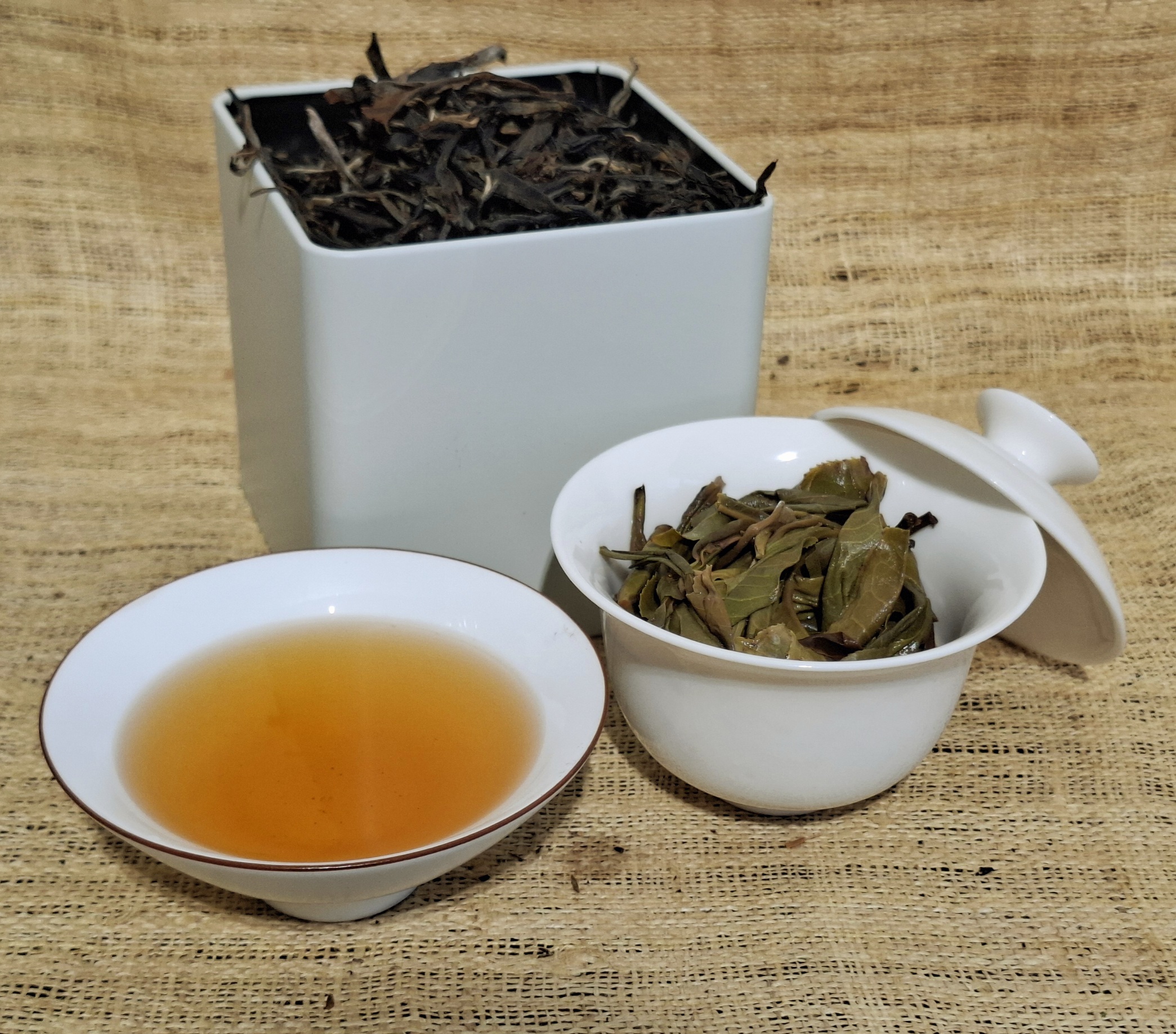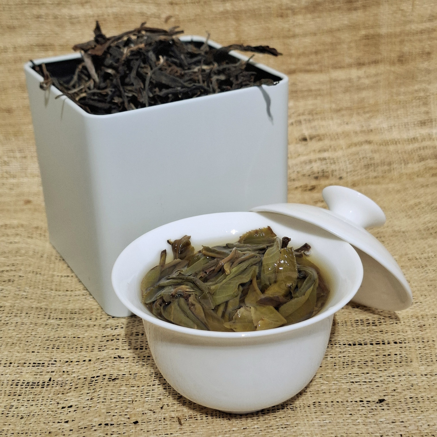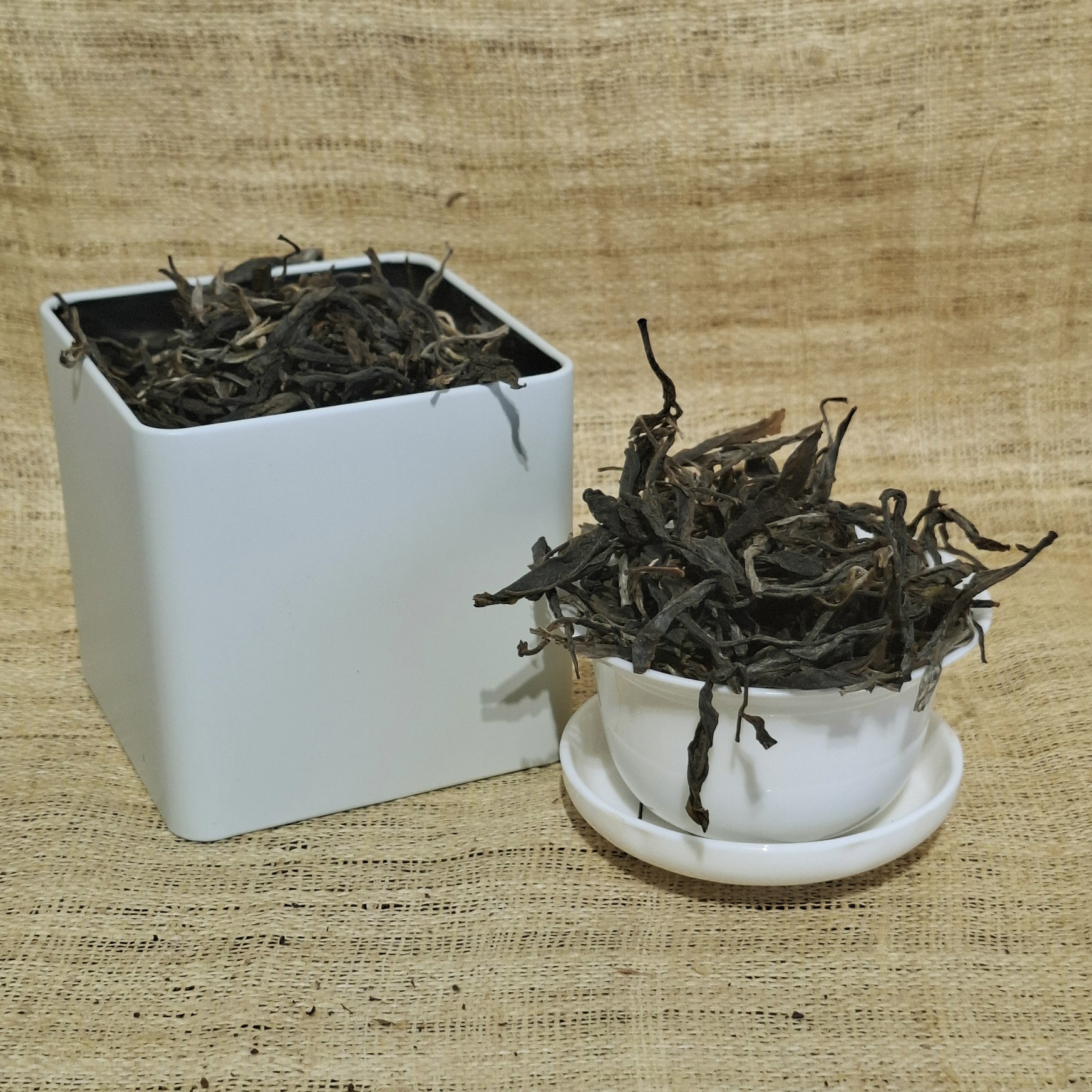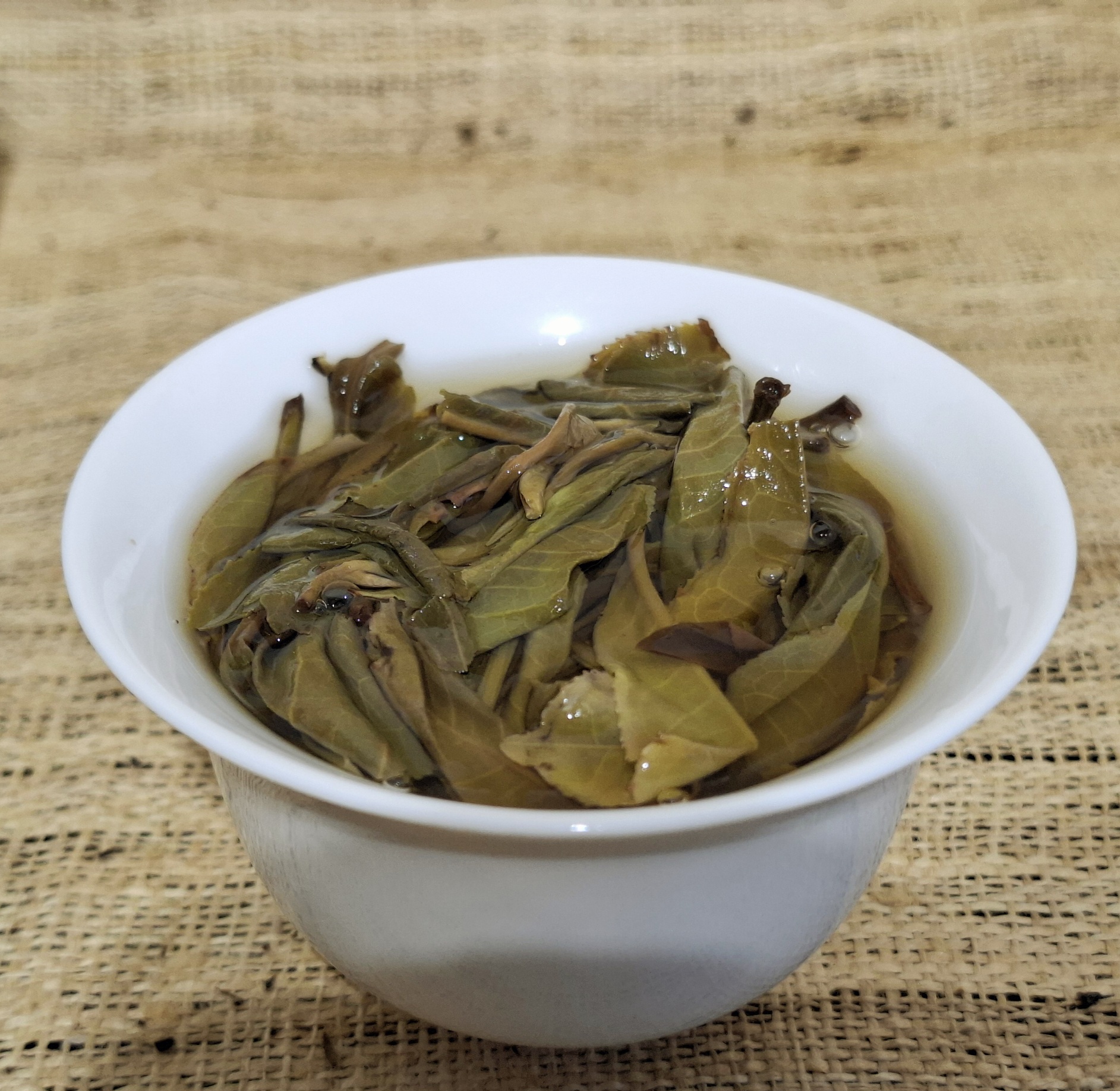 A loose Puer tea from a tea garden in Xiao (Jing Hong) Meng Song to the south of Bulang Shan near the Myanmar border. This sun dried tea is made from tea from a garden of ancient tea trees at an altitude of around 1700 meters.