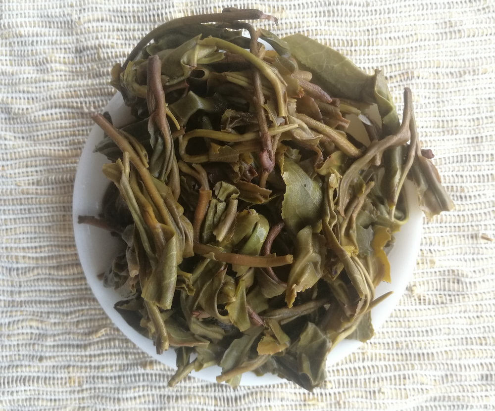 In the Yiwu area Yi Shan Mo tea is noted for its character which is rather different from other teas. It has a delicate 'ru kou' with good viscosity. The 'hui gan' is quick and the 'sheng jin' not bad. It has a bright yellow broth and a nectar-like fragrance. The 'bei xiang' is also decent. It is not particularly strong in flavour, being more delicate and sweet, but none-the-less has decent thickness and can be steeped many times.