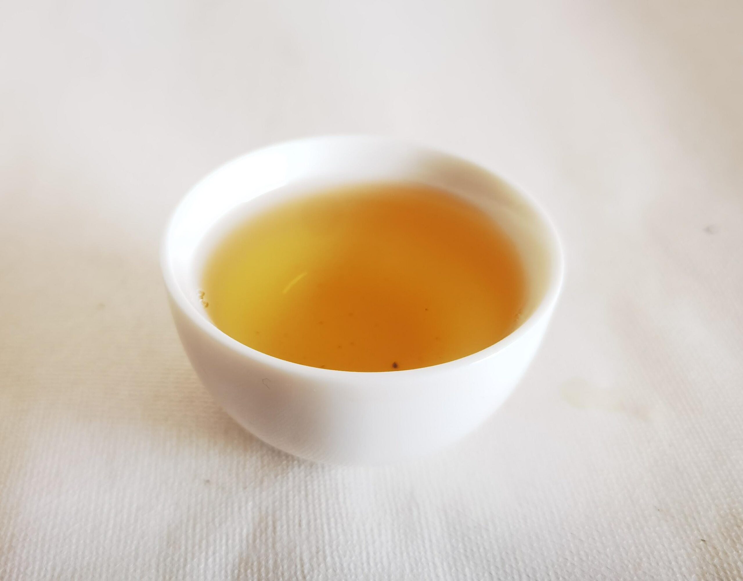 The wet leaves smell slightly vegetal-floral. Nothing particularly distinct. The 'bei xiang' is slight, with floral notes. The broth is a decent light-mid clear yellow.